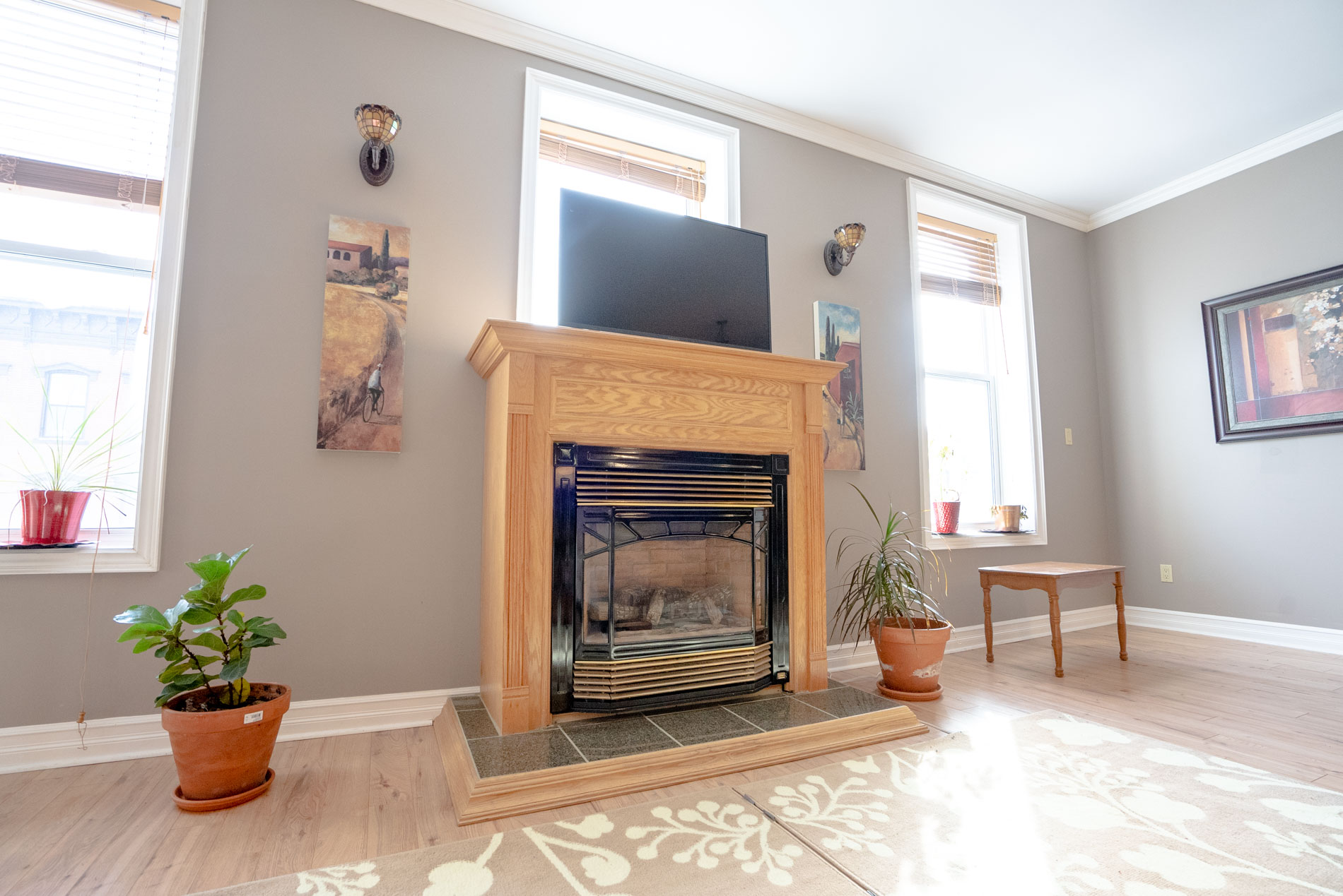 Heating Source: baseboard fan heaters and natural gas fire place, window a/c unit