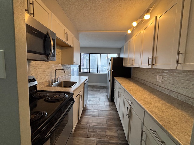 Appliances: fridge, freezer, oven, stove, microwave